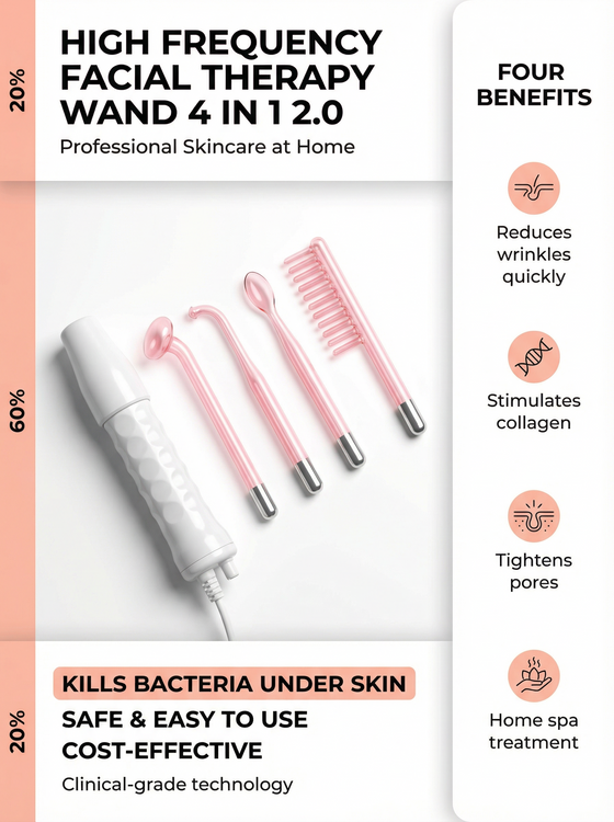 Meet your new at-home skincare sidekick: our 4-in-1 High Frequency Facial Wand 2.0 uses gentle warmth and high-frequency currents to banish blemishes, boost collagen, and revitalize your skin.